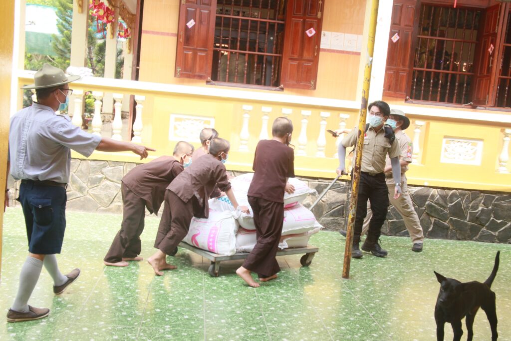 Sáng ngày 4/7/2021 một số tráng sinh HĐVN tại Sài Gòn đã phối hợp với 1 số huynh trưởng Gia đình phật tử đến huyện Long Thành tỉnh Đồng Nai hỗ trợ 500 kg gạo cho 1 cộng đồng trẻ có gần 50 em mồ côi và khuyết tật nhà chùa nuôi dưỡng kịp thời trong mùa dịch COVID-19.