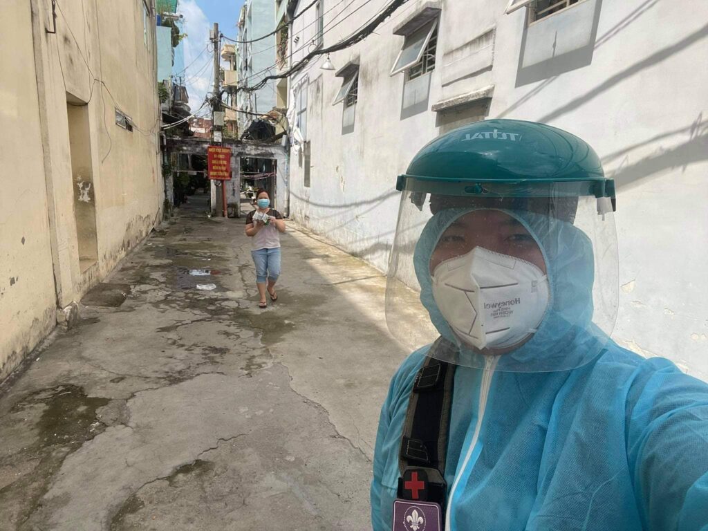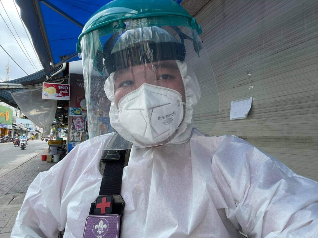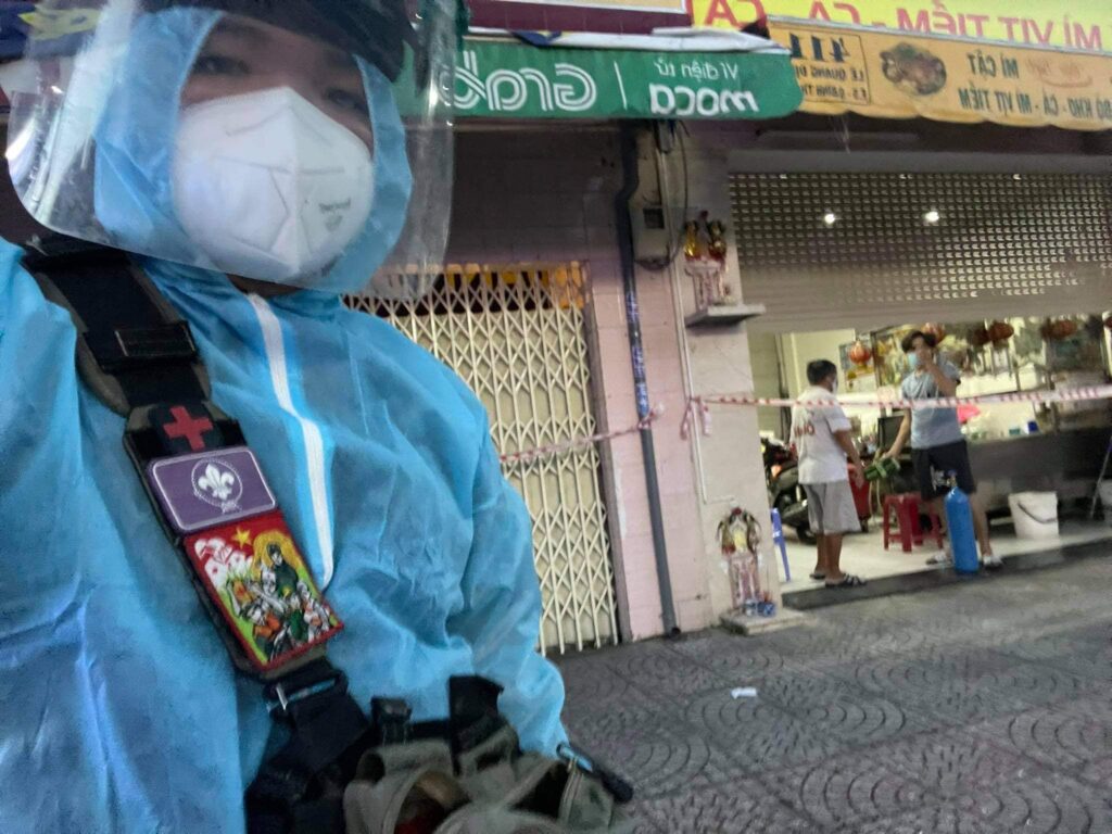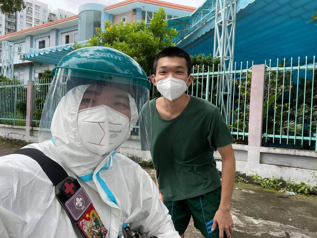 Thiếu Trưởng Hoàng Bách Tùng tình nguyện viên phục vụ tại bệnh viện dã chiến quận Phú Nhuận .