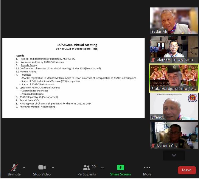 Sáng Chủ nhật, 14/11/2021, Tr. Trần Minh Thiện (Tổng ủy viên HĐVN) và tôi (Ủy viên Quốc tế) tham dự Buổi họp của ASARC lần thứ 15 (trực tuyến qua nền tảng Zoom).