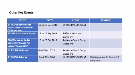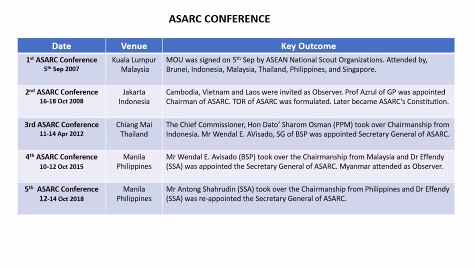 Chúng tôi rất cám ơn sự đóng góp rất nhiệt tình và hiệu quả của Tr. Chủ tịch Antong S Rahmat, của Tr. Tổng thư ký Dr. Mohd Effendy Rajab, trong suốt nhiệm kỳ qua. Đồng thời, chúng tôi cũng xin được cám ơn sự hỗ trợ, giúp đỡ của các Tr. Wendel E. Avisado, Tr. Ahmad Rusdi, Tr. Brata, Tr. Rajalingam, Tr. Somboon,… và tất cả các Trưởng đã hỗ trợ Hướng đạo Việt Nam.
