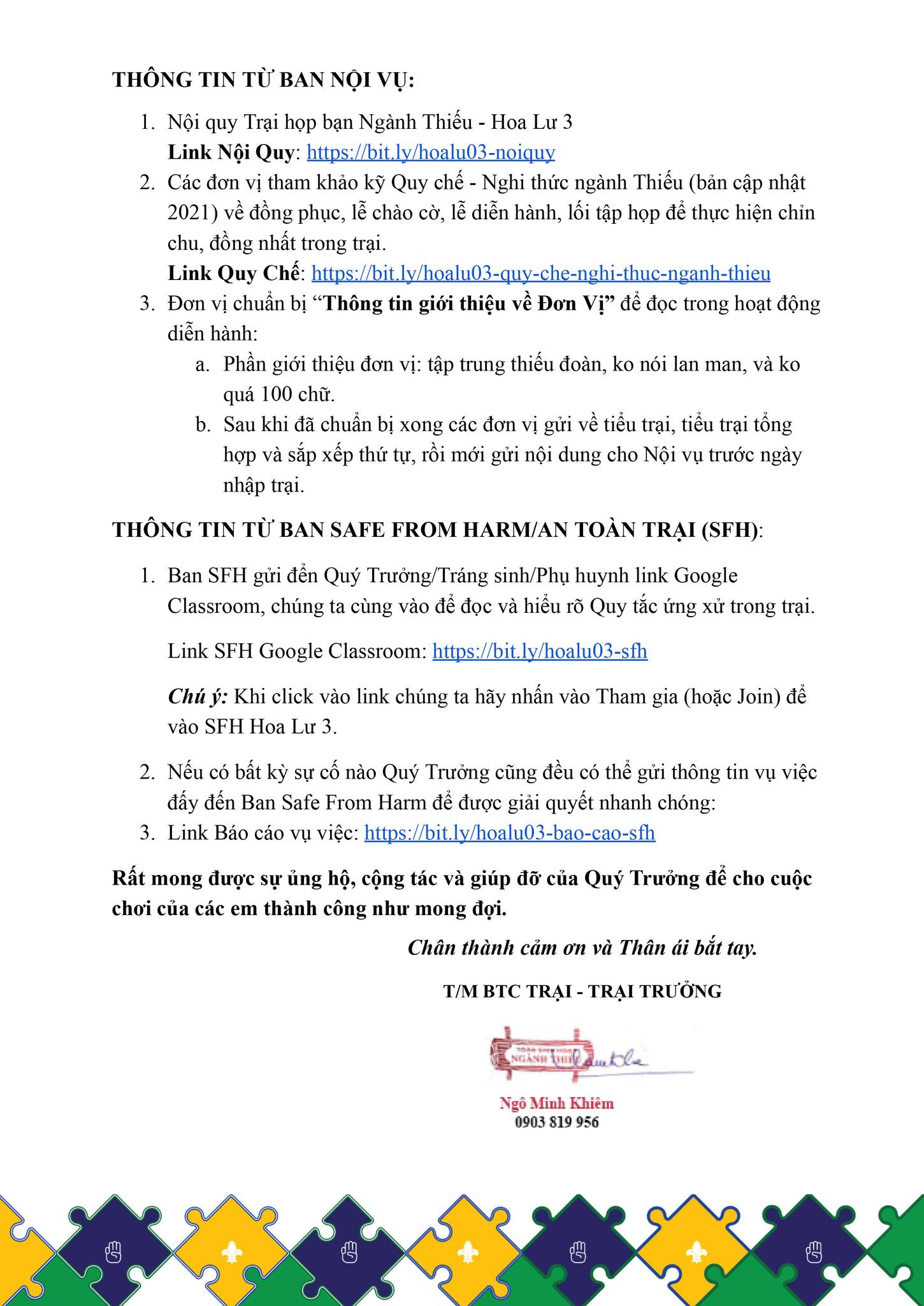 Thông tin từ Trại Hoa Lư 3
