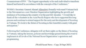 Outcomes of the 42nd World Scout Conference and 14th World Scout Youth Forum Dear friends, [...]
